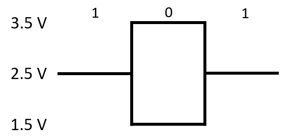 The interesting thing about CAN is that you would think that when the CAN H and CAN L signals diverge from the idle 2.5 V idle state to their respective higher and lower voltages, this would be representative of transmitting a binary 1. However, it's exactly the opposite. When the bus is idle, that is both CAN H and CAN L are at 2.5 V, this is used to represent a binary 1. When CAN H and CAN L diverge, this is used to represent a binary 0. This inverted logic is very important as it's what allows CAN to have multiple nodes randomly transmitting at the same time without any loss of data. This process is called arbitration and will not be covered in this article.