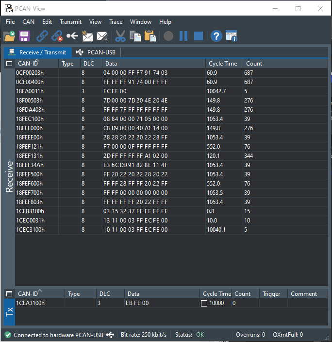 The PCAN-View software also operates with fewer bugs and glitches than CAN King. I find that CAN King often freezes or needs to be re-started, but PCAN-View just works all the time.