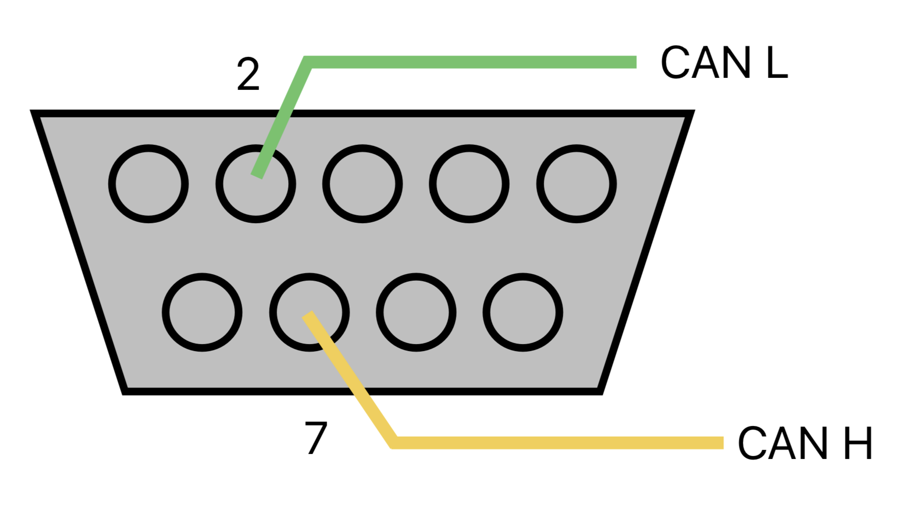 This is what I use to connect to trucks via the J1939 OBD port. Notice I have two network connections, since sometimes I need to read CAN messages on the secondary network. I also have a PWR and GND tap in case I need to power a small CAN circuit board that I am testing. You can buy a green J1939 connector here. I just used an old J1939 connector and removed the housing for pin F. In 2016, the color and keying were changed as part of an update to the J1939 standard. The baud rate was increased from 250k to 500k and the connector changed so that an older, incompatible service tool could not be plugged in to a green OBD port by mistake. The new green connector will fit into both the black and green OBD ports. You can read more about this here.