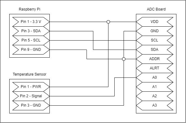 So it's not as simple as just hooking a temperature sensor directly to your Pi. That's okay. Don't quit yet. The Analog to Digital Conversion (ADC) does add an additional step, and therefore an additional layer of complexity to the project. But don't worry. We aren't the first ones to connect analog sensors to a Raspberry Pi. There are plenty of manufacturers that make small circuit boards called development boards that make this pretty easy. This project will use an ADS1115 16-bit ADC development board to translate the temperature sensor output voltages to a communication protocol that the Pi can read.